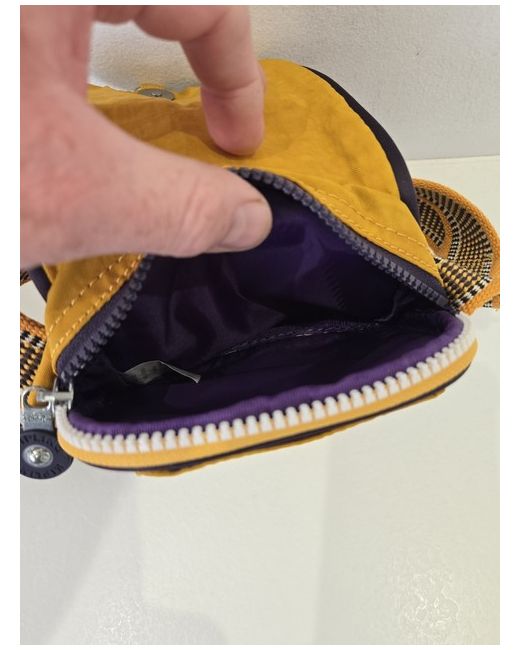 The Kipling Shoulder Crossbody Bag is a vibrant yellow nylon bag with a purple nylon lining, ideal for casual occasions. This stylish bag features a zip closure, adjustable shoulder strap, and silver hardware accents. The multicolour canvas handle adds a fashionable touch, making it a practical and trendy accessory for women on the go. Complete with a bag charm, this crossbody bag from Kipling is both functional and chic, perfect for everyday use. 14cm x 16cm Lovely little bag, great for camera or going to a gig for purse and phone.