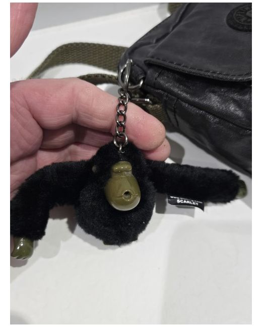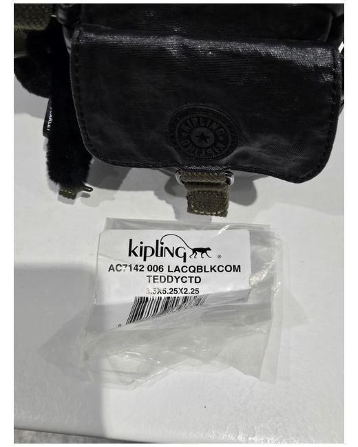 This Kipling shoulder bag is medium-sized with dimensions of 10 cm width, 16 cm height, and 10 cm depth. It features a zip closure, green handle/strap, and a grey nylon lining. Made of black nylon with silver hardware, the bag has pockets and comes with a bag charm. Ideal for casual occasions, it is a stylish accessory for women.