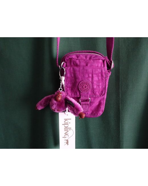 KIPLING TEDDY MINI SMALL. Maximum 145 cms for crossbody wear. GRAPE ā BNWT. Grape - mottled effect dark pink. Front pouch with Velcro fastener. Minimum 76 cms, for shoulder wear. SHOULDER/CROSSBODY BAG.
