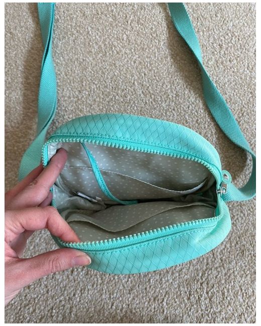 This Mint Green Kipling Bag with Cross Hatching is a stylish medium-sized shoulder bag perfect for women. Made from polyamide with a zip closure and silver hardware, it features a charming bag charm and a green handle/strap. The mint exterior colour adds a refreshing touch to any outfit, making it a versatile accessory for everyday use.