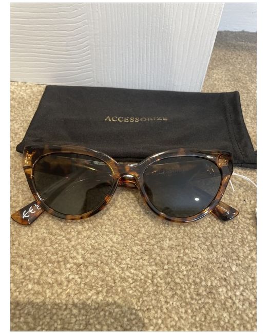 The Accessorize Crystal Tortoiseshell Cat Eye Sunglasses are a stylish and chic accessory for women. Made from plastic with a tinted lens technology, these sunglasses offer UV400 protection to keep your eyes safe from harsh sunlight. The cat eye style and brown tortoiseshell frame add a touch of sophistication to any outfit. Whether you're heading to the beach or out for a casual day out, these sunglasses are a must-have accessory to elevate your look.