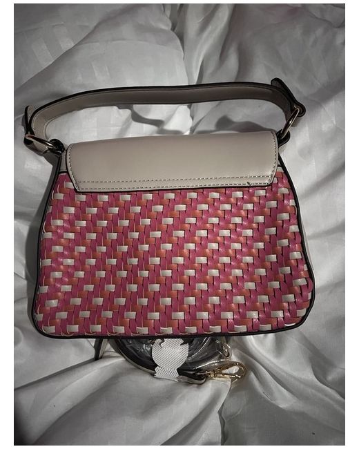New with tag Accessorize Shoulder Bag. Two handle options, short handle or comes with long handle so you can use it as a shoulder bag. Has a weave design in a coral pink on front and back as well as plain areas of beige. Completed with gold hardware and a magnetic closing. Price new £32