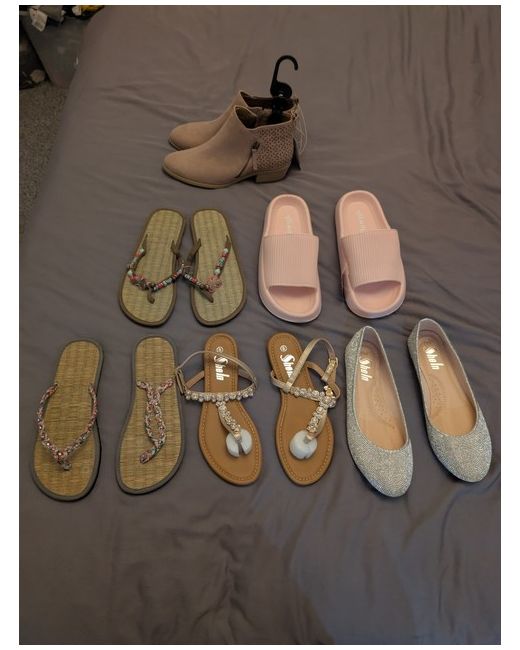 Brand new sandals š©“ 3 X sandals 1 x slidders 1 X super sparkly flats ( I love these so much but they don't fit) š 1 x pink ankle boots All brand new (I have far too many shoes) š«£ Size 6