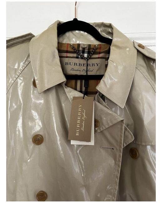 This RARE Burberry Women's Trench Coat is a stylish and classic wardrobe staple, perfect for casual occasions. Made from cotton with a beige colour, this long coat features a button accent and is branded with the iconic Burberry logo. Designed in a regular size 12 fit, this trench coat is dry clean only to maintain its quality. The timeless style and high-quality material make it a versatile and elegant addition to any woman's clothing collection. Laminated Cotton. BRAND NEW WITH TAGS.