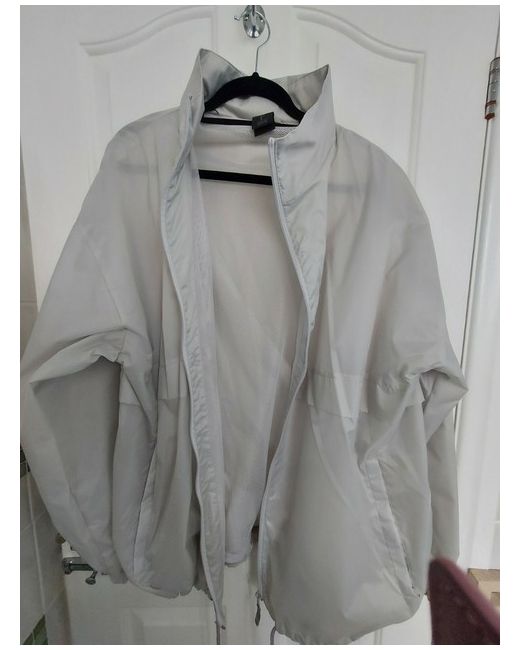 A nice quality lightweight jacket with a hood that folds into the collar with velcro fasteners. The jacket is 80cm in length.