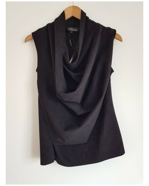 New Tilinaz Collection Black Sleeveless Jacket. With elegant sweep over front that can be worn open or closed, closeure by poppers. Size: Small. Please note product is without material composition or care lables. Condition is "New with tags".