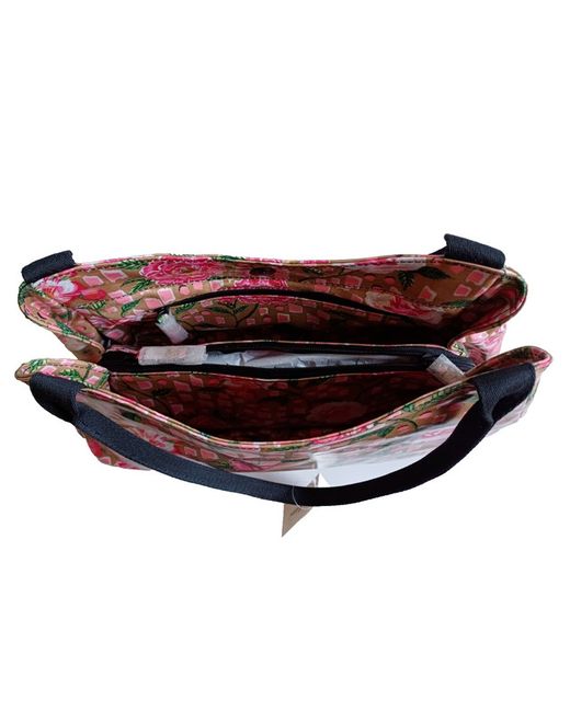 Two strong webbing grab handles that easily fit over the shoulder. Magnetic snap closure. Outer Material: 100% PVC Shiny Coated Cotton.