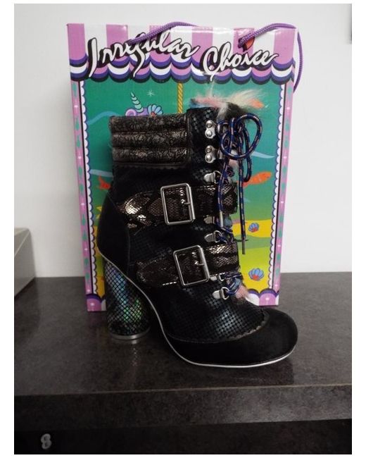 Rare Discontinued “BOBS UR UNCLE” Black Mix Ankle Boots. RRP £200.00. IRREGULAR CHOICE. These amazing ankle boots have a side zip, round toe, lace up and buckle detail. The heel height is approx 4”.