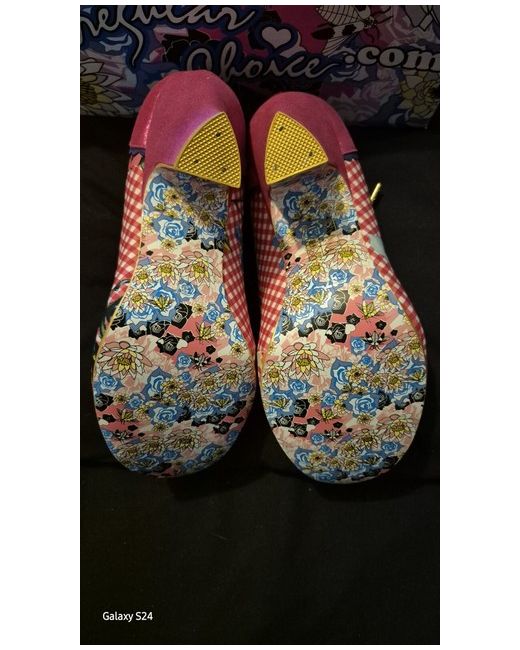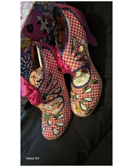 Sugar Plum Pink They are truly the perfect stand out shoe. Vintage style with cutout and pink satain ribbon. Pink and white gingham with floral pattern. BNIB Unworn, beautiful shoes great for a wedding or office