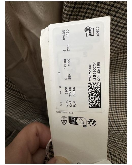 The jacket boasts a classic silhouette with a double-breasted front, featuring eye-catching multicoloured accents that add a modern twist to the traditional pattern.