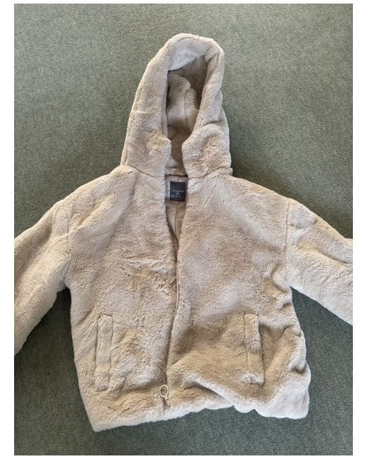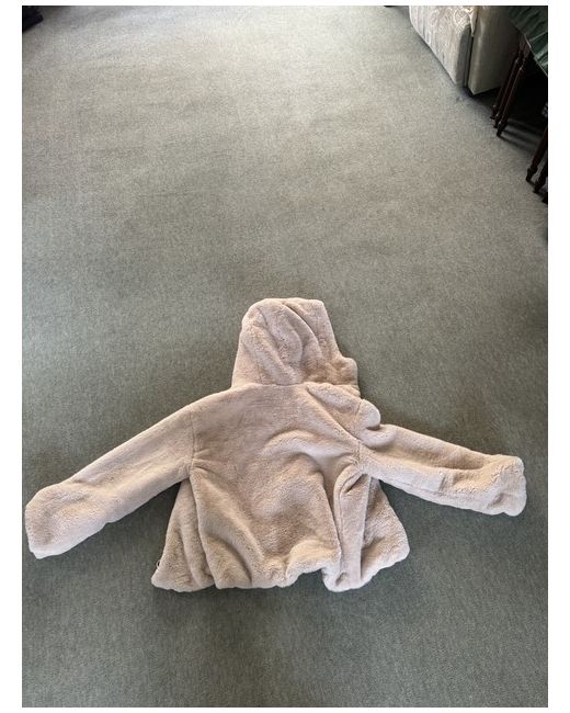 Cream fur jacket with zip design and hood. Size XS but fits size 6-8. New without tags.