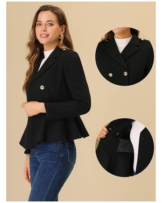 The jacket boasts a flattering short length, long sleeves, and a collared neckline for a sophisticated touch. Its unique ruffle hem detailing and button closure add a stylish flair to the classic blazer design.