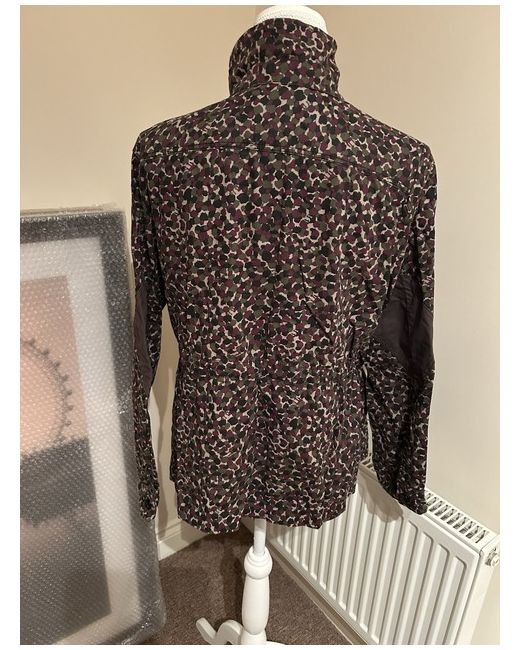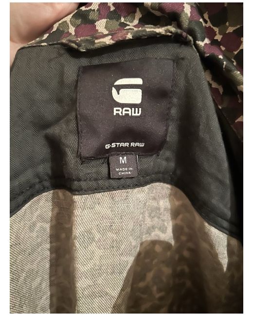 G- Star Raw camouflage jacket. Draw string inside to cinch waist. Hidden front buttoning. Burgundy, Green, Black and beige colours. Size M. Excellent condition. From a smoke free and pet free home.