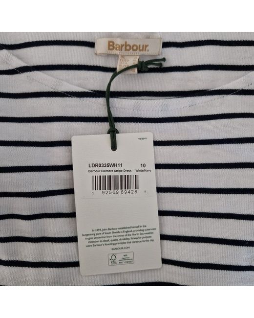 Barbour Dalmore Stripe Dress White/Navy Size 10 Nautical inspired with coastal, sailor stripes. Embroidered logo to chest. Round neck. Sleeveless.