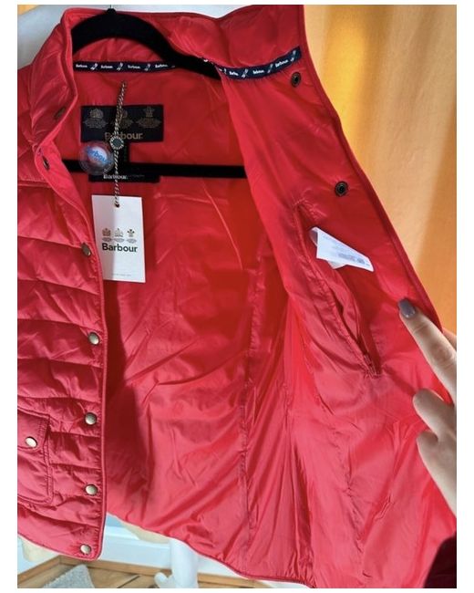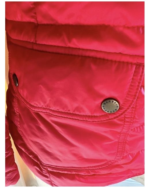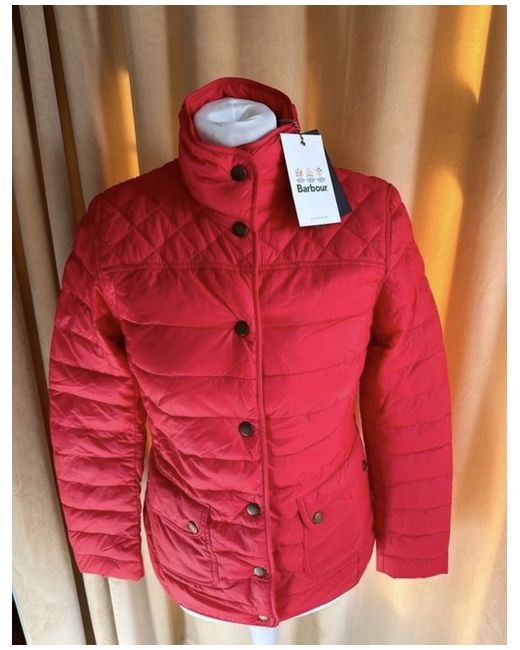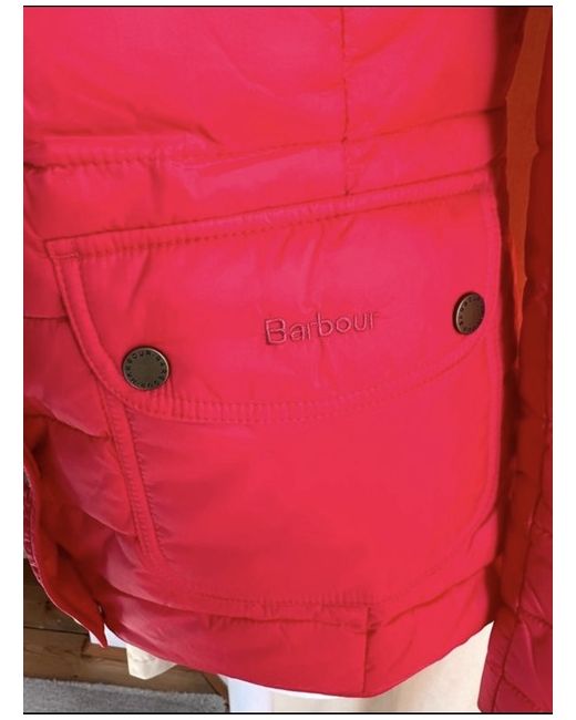 Barbour Coledale Red Lightweight Jacket size 8 Lovely bright red colour. Designed to offer a generous fit, this jacket is crafted with a baffle-quilted outer accented by box quilting at the yoke for subtle textural contrast. A dipped back hem enhances the flattering silhouette, while the funnel collar can be fastened shut for extra cosiness when needed. Barbour embroidery to wearer's left pocket. 100% polyamide Machine-wash separately Back length: 27ā29.5" | 68.6ā74.6cm #barbourjacket #red #springjacket #outdoor #countrystyle
