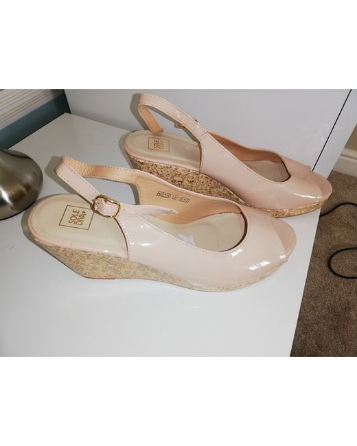 Sole Nude Patent Wedge Slingback Sandals Brand New UK 7 Ladies Shoes