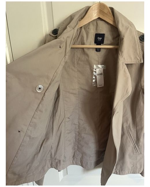 Women's Beige Gap Jacket Size - Medium Button fastenings to the front Button style epaulettes on the shoulders 2 x pockets to the front. Lightweight denim style material Brand new, never worn. Tags still visible also with spare button. Please note - This item has been stored in a wardrobe. All attempts have been made to note any possible flaws