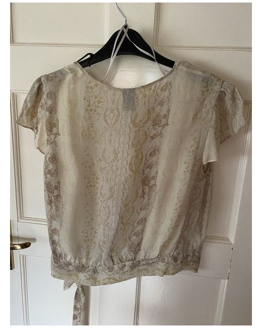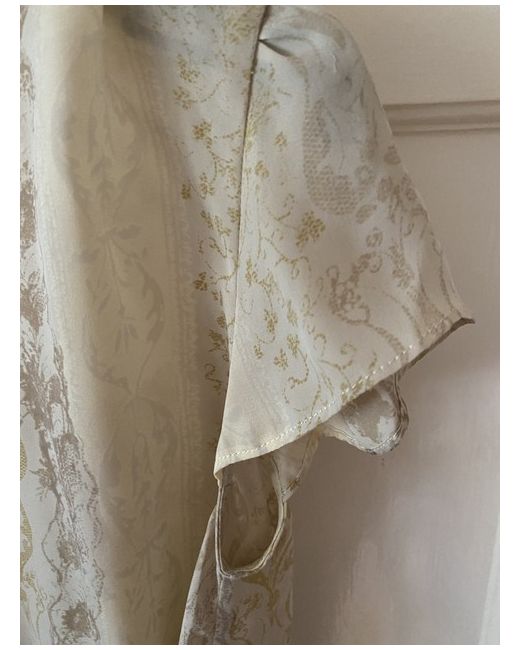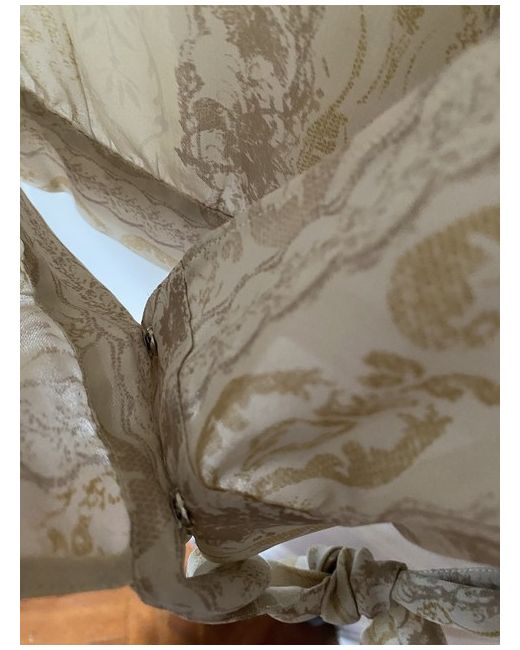 Ladies White Checked Blouse Ruched Sleeves Medium BNWOT
