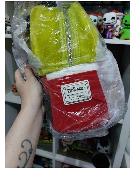 This Loungefly grinch themed backpack , faux fur/leather features a zip closure. Brand new with tags. all my bags were bought from truffle shuffle or very neko and are official lounfefly bags im selling some of my collection as have so many and i never use them. see other items for more great items.