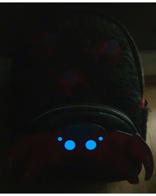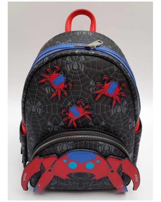 Cloisonne Marvel x Loungefly label at side. The characterful design is covered in Spider-Bots and is complete with glow in the dark detail. Inspired by the WEB Slinger Attraction at Disneyland Paris.