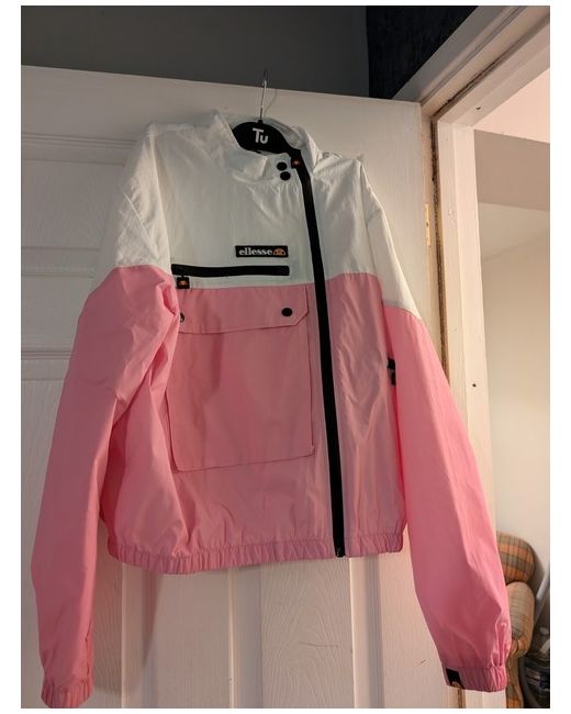 This is a women's Ellesse jacket in size 14. The jacket features the iconic Ellesse brand and is designed in a regular fit for women. This stylish jacket is a versatile addition to any wardrobe, perfect for layering up in cooler weather while still maintaining a fashionable look.