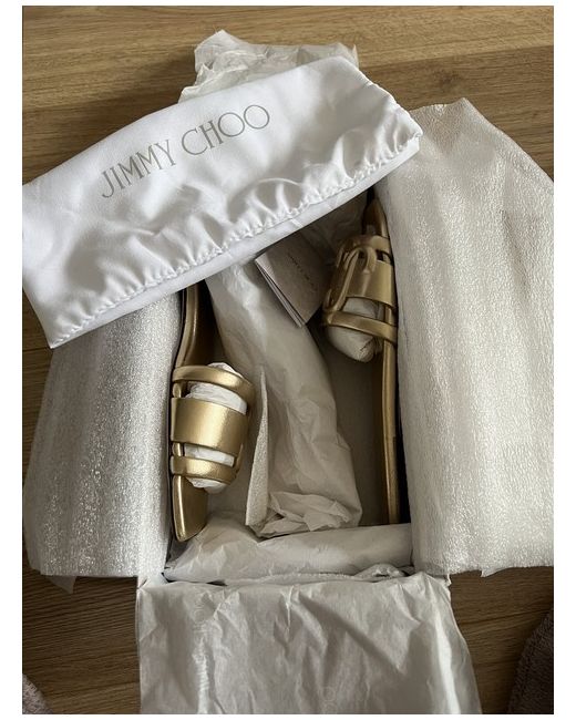Brand new Jimmy choo flat sandals in gold colour - comes with box and gust bag. Size 36.5