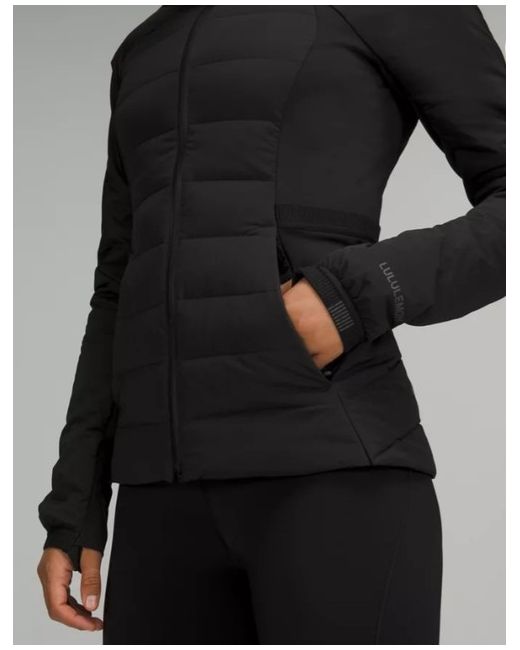 The signature Down for It All, Down-Fill Jacket. This jacket is fully loaded for running in cold weather. Slim Fit, Hip Length. Slim fit skims your body Product Features: Zippered hand pockets with hidden phone sleeve, Thumbholes, Reflective details.