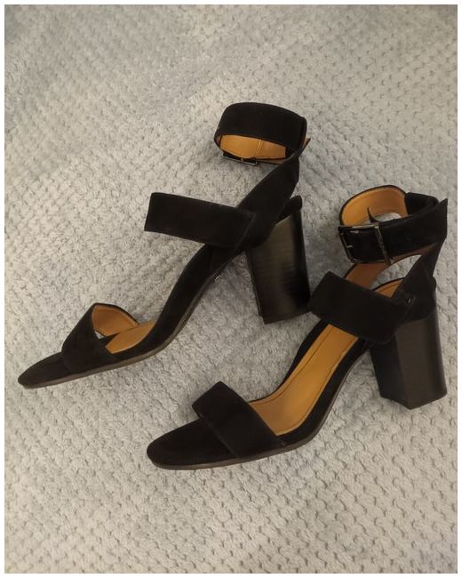 Beautiful black high heels. A slight mark under where you heal sits. Not worn outside, only around the house but too high for my partner, so would not wear. Look lovely and have built in arch support.