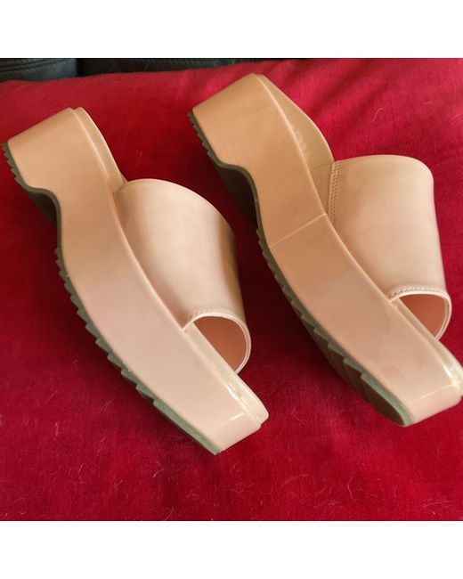These size 5 sandals feature a sleek pink patent leather upper that adds a pop of colour to any outfit, while the mid-height heel provides a subtle lift that's comfortable to walk in.