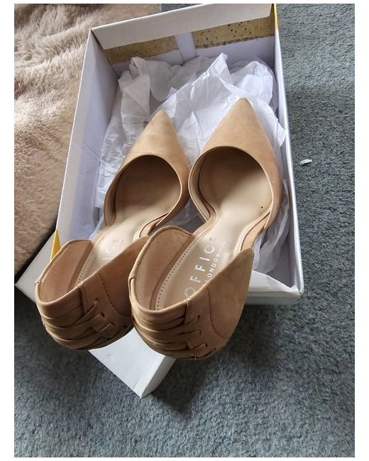 Step up your fashion game with these stylish OFFICE Nude Courts. Haven 2 Part lace detail court. Crafted with high-quality nubuck material, these beige-coloured heels, exude sophistication and elegance. The stiletto heel style adds a touch of glamour to your outfit, making it perfect for formal occasions. RRP 69.99 These women's shoes are designed with comfort in mind, making them an ideal choice for long hours of wear. The size 5 heels are perfect for those who want a court shoe that offers both style and comfort. Add these shoes to your collection and step out in style. RRP £69.99
