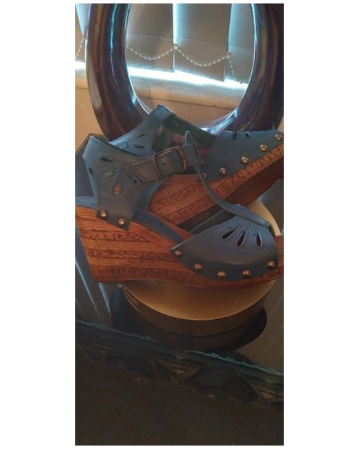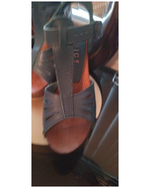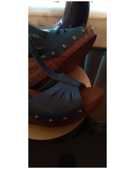Office New Beautiful Blue Leather Wedge Sandal Size 40 Side Buckle.