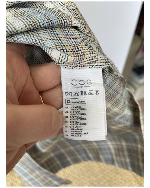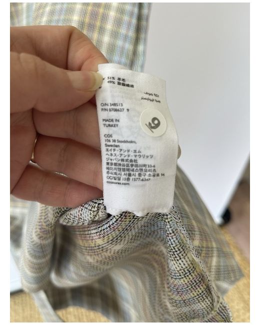 Elevate your wardrobe with this stunning COS pinafore dress. Featuring a multicoloured wool blend check pattern, this knee-length dress is perfect for any occasion, whether it be a wedding, party, or casual outing. The sleeveless design and square neck create a modern and chic look, while the zip closure adds a touch of practicality. Crafted from a lightweight twill fabric, this dress is easy to care for and can be dry cleaned only. With its on-trend and scandi style, this dress is perfect for any fashion-forward individual looking to make a statement. Available in size UK 18, this dress is a must-have addition to any wardrobe. Measurements in inches: Pit to pit - 20 Length - 44