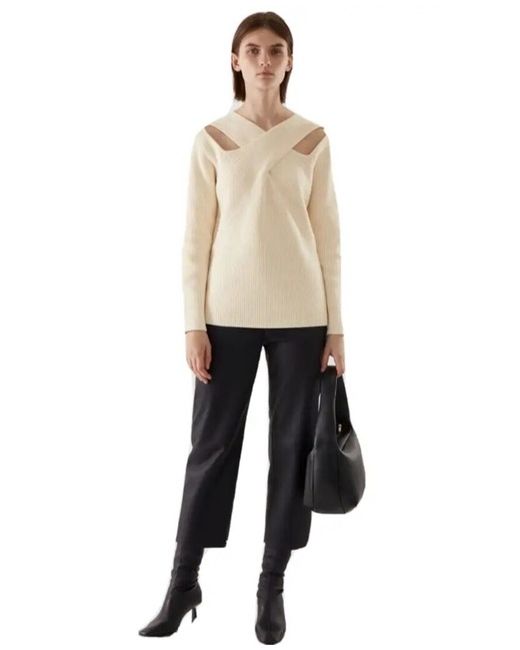 COS CUT-OUT JUMPER Crafted from organic cotton in a classic off-white hue, this knitted jumper features a horizontal ribbed panel detail with cut-out details across the shoulders. - Relaxed fit - Long sleeves - Organic cotton is grown from non-genetically modified seeds without chemical fertilizers or pesticides 100% Organic cotton / Machine washable Back length of size S is 65cm New, never worn, with tags. IT’S QUIET OVERSIZE, THE SLEEVES ARE LONG, MAYBE FIT L, BE SURE BEFORE TO BUY IT BECUSE I WON’T ACCEPT A RETURN