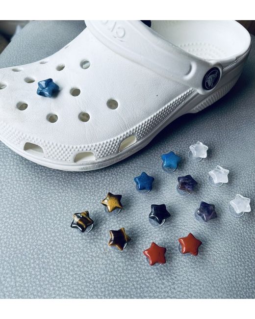 Add a touch of charm to your crocs with these beautiful gemstone croc charms. Perfect for anyone who loves to accessorise, these charms are made from high-quality materials and are designed to last. These charms are sure to add a pop of colour to your crocs and make them stand out from the crowd. Available in Amethyst, clear quartz, blue aventurine, Tigers eye or red Jasper. 1 x croc charm is supplied. Please let me know which gemstone charm you would like in the notes section, otherwise one will be selected at random.