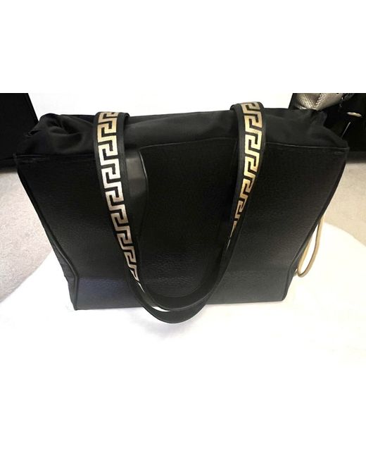 Black textured tote bag Black and gold tone Medusa logo on the front. Black and Gold Versace logo design on handles. Logo lining inside Has one very spacious compartment, two side pockets as well as one zipped pocket Measurements: approx. W40 cm x H32cm x D13cm (15.74” x 12.6” x 5.12”) Dust Bag is included. If any questions, please do not hesitate to ask