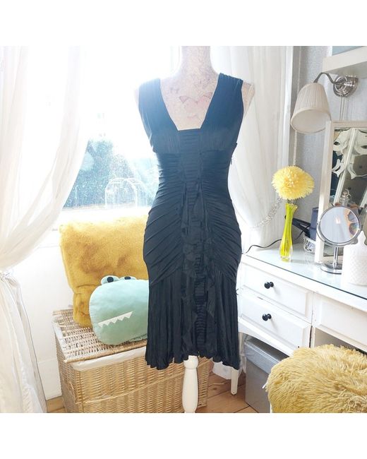 This stunning Versace dress is a must-have for any fashion-forward woman. The sleeveless black fit and flare design is sure to flatter your figure, while the below the knee-length cut adds a touch of elegance to your look. With its vintage charm and versatile style, this dress is perfect for any occasion. Crafted from high-quality materials and featuring the iconic Versace brand, this dress is a true investment piece. The dress is a size 40 and is suitable for regular size types. Whether you're dressing up for a night out or keeping it casual, this dress is sure to make you feel confident and stylish.