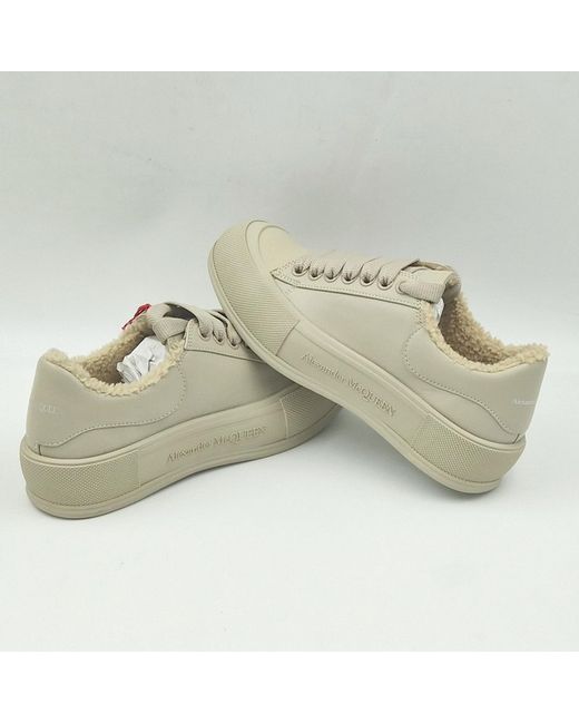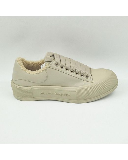 Alexander McQueen brings a tactile note to these beige Deck trainers with a lining of plush shearling, finishing with a chunky rubber sole. Leather, Shearling lining, Leather lining and insole, Rubber sole.