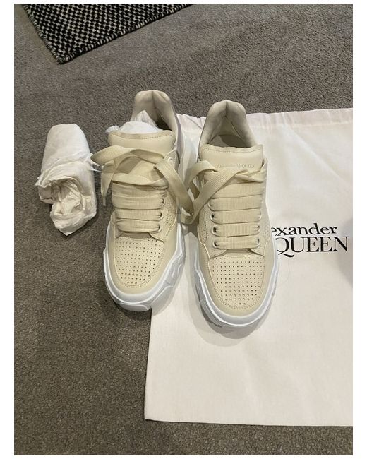 The Alexander McQueen trainers in white are a stylish and versatile choice for women. Made from leather with a standard shoe width, these sneakers offer both comfort and durability. With a UK size of 5, these iconic shoes are perfect for adding a touch of luxury to any casual outfit. The classic design and renowned brand make these trainers a must-have for any fashion-forward woman.