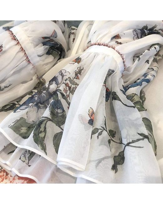 Alexander McQueen Gown Alexander McQueen Floral Butterfly Floaty Silk Chiffton Maxi Dress GownMade in Italy Colour: White, black and multicolouredMaterial: 100% silk. Lining 100% silk Alexander McQueen luxrious silk chiffon maxi dress in a floral and butterfly printA full length dress constructed of three layers of silk chiffonSemi sheer ballon sleeve with button fastening gathering to wrist and floaty cuffFitted to waist with flared and floaty skirtConcealed zip fastening to the back.