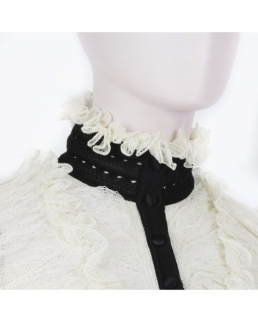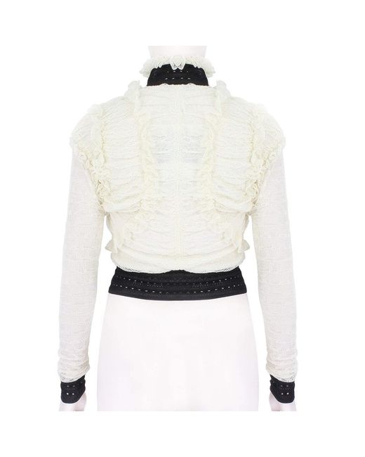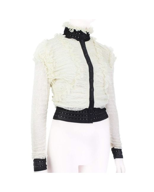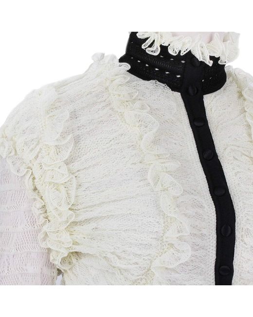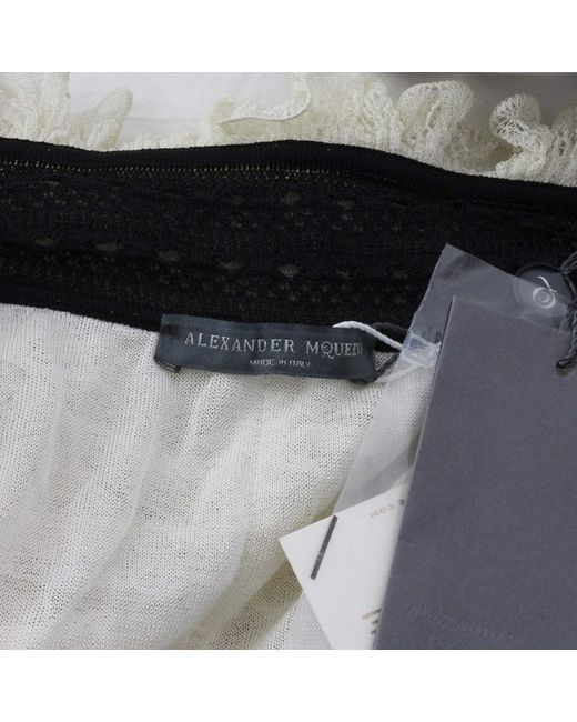 Alexander McQueen Cardigan Alexander McQueen Ruched Lace Cardigan Colour: Ivory and blackMade in ItalyMaterial: 98% silk, 1% polyamide, 1% elastane. Trim 1: 100% silk. Trim 2: 88% silk, 10% polyamide, 2% elastane.