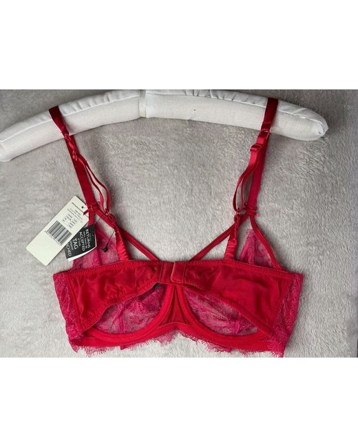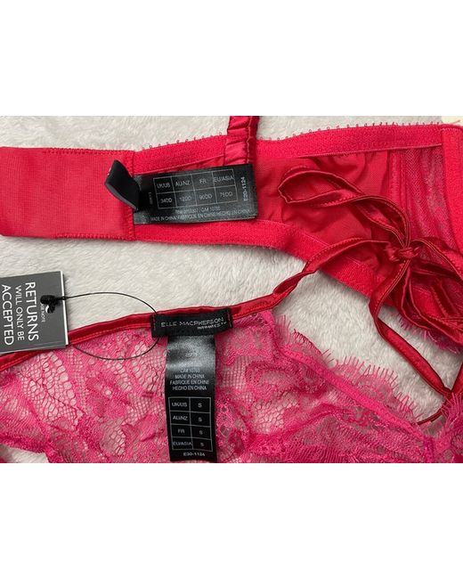 34DD & Small. Elle MacPherson Intimates. Underwired bra and briefs. Red lace with satin strap & bow detail.