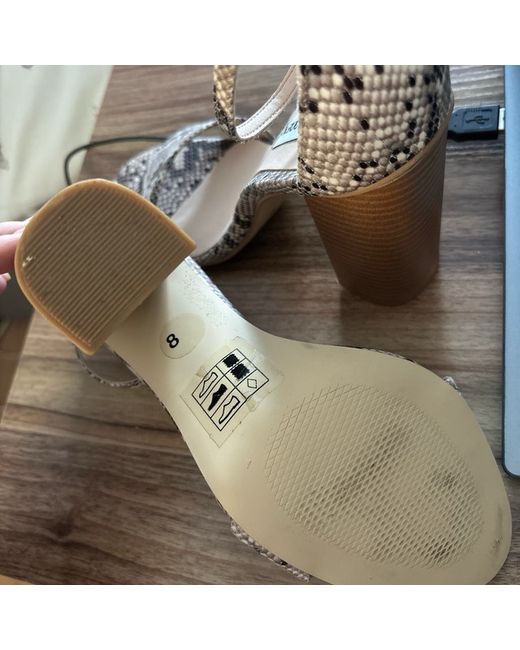 Snake skin heels, Steve Madden sold as size 6. Would more likely fit a 5 as quite small fitting and narrow footbed. Never worn, no tags only tried on in shop. Smoke free home good condition small imperfections on heel.