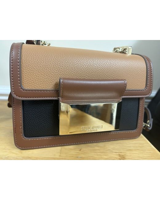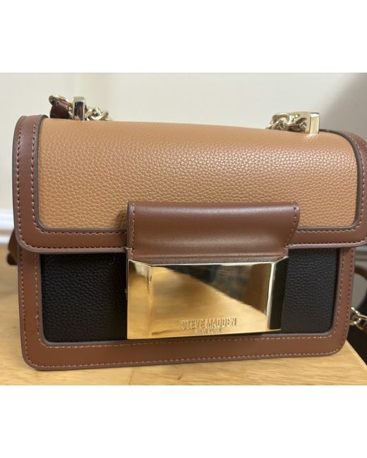 Elevate your style with this chic and trendy Steve Madden shoulder bag. The multicoloured leather exterior is complemented by gold hardware, giving it a luxurious and sophisticated look. The bag comes with an original dust bag for safekeeping and features inner pockets for added convenience. Perfect for casual occasions, this small-sized bag is a must-have for any fashion-forward woman. The no pattern design adds a touch of simplicity to the overall look, making it a versatile accessory that can be paired with any outfit.