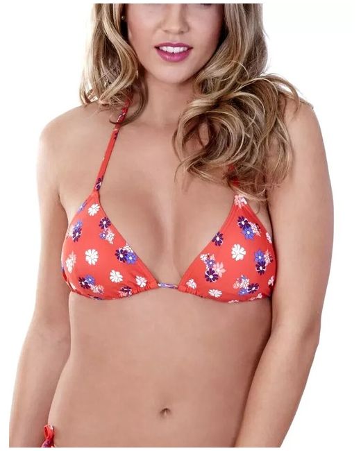 Daisy Print Triangle Halterneck Bikini Top Removable Padding