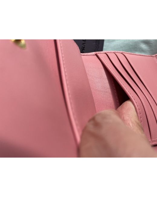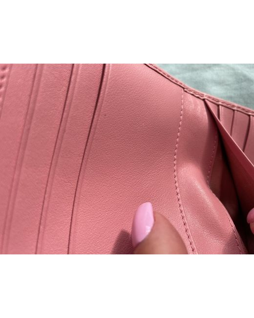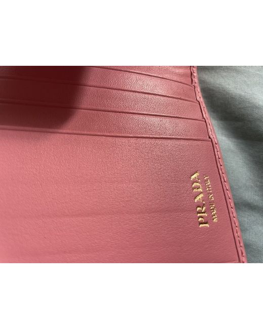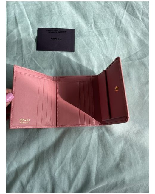 Introducing a stylish and chic addition to your collection, this pink Prada wallet/purse is crafted from high-quality leather and features the iconic Prada logo. The perfect accessory for any woman, this wallet is not only fashionable but also functional, with enough space to hold all your everyday essentials. Pink leather with gold logo to exterior 6-8 card slot holders Large area for bank notes Press stud closing coin purse 2 x further compartments Prada logo within Prada stamped on press studs Authenticity card enclosed RRP £290