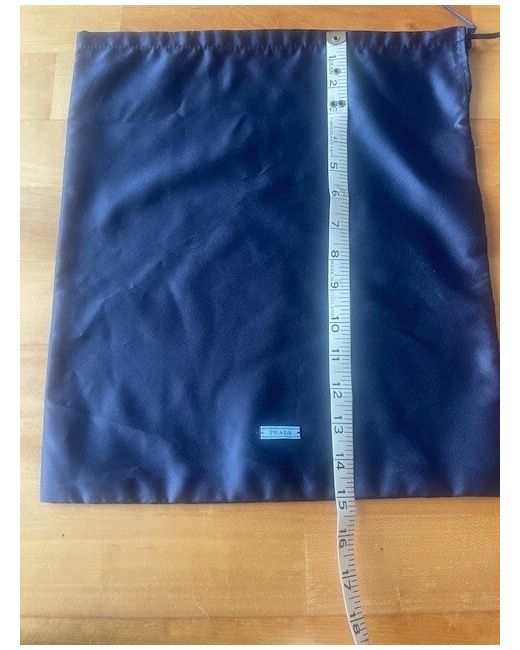 Elevate your accessory collection with the sleek Prada black drawstring dust bag, a versatile piece that combines functionality with high-end fashion. The bag measures 34cm in width and 39cm in height, providing ample space to store a variety of items, while the unisex design makes it a versatile addition to any wardrobe.Crafted from durable polyester, the exterior offers protection against the elements, ensuring your belongings are shielded in a durable and smooth surface. The classic black exterior is complemented by a matching drawstring closure, securing your items with a touch of luxury.