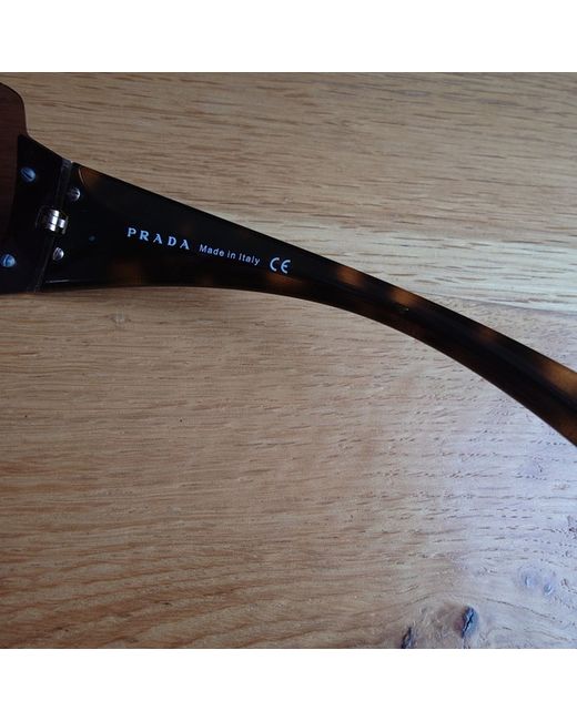 Prada Sunglasses No scratches Well kept. Gorgeous timeless slick wrap-around Gold hardware Authenticity code stamped on frame - SPR 041 2AU-8C1 122 3N