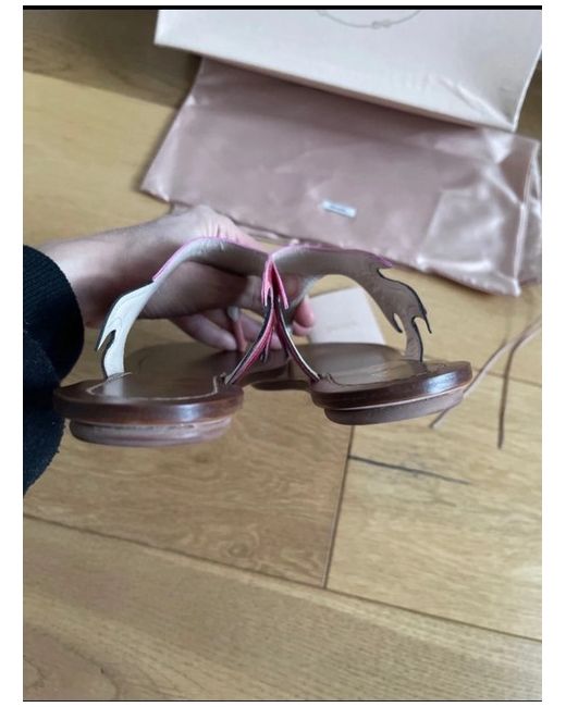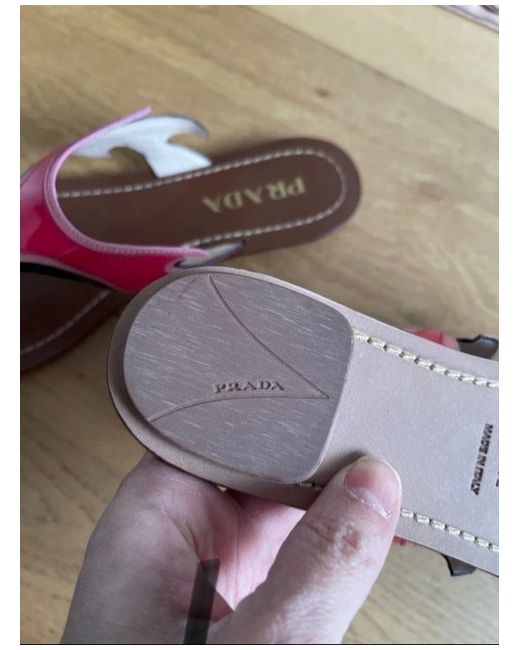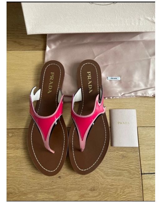 Now an iconic and collectible piece from fashion stalwart, Prada. Pristine condition, with dustbag and box and authenticity card. I also have attached the receipt for proof of purchase. These Prada Flame Sandals are a stylish choice for women, featuring a vibrant fuchsia patent leather upper with a flat sole. The design includes a unique flame detail that adds a touch of sophistication to the sandals. With a UK shoe size of 4.5, these sandals are perfect for adding a pop of colour to any outfit. Perfect for those looking for a statement piece to elevate their wardrobe.