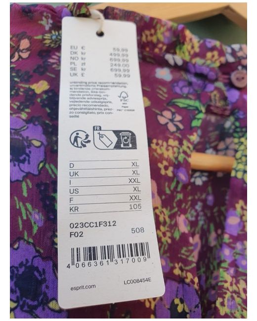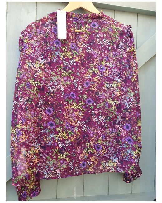 Delicate 2-in-1 blouse, floral, size XL, by Esprit. Finished with delicate frills, sleeves tightened with elastic bands. Fastened at the back with a logo button.