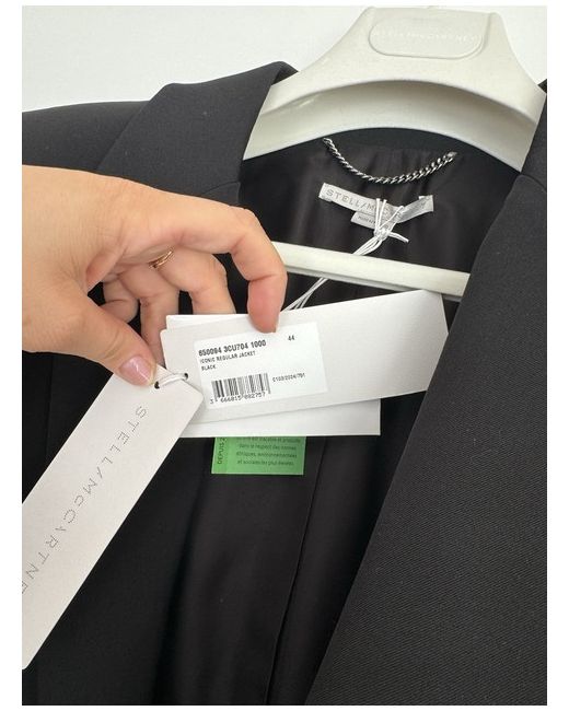 Crafted by the renowned Stella McCartney, this classic black blazer is a timeless addition to any wardrobe. The iconic design, tailored in a regular 44 size, offers a slim boyfriend fit that exudes sophistication and versatility. Made from RWS wool flannel, the jacket has a polished notched lapel and padded shoulders. Its single-button fastening makes it a versatile tailoring staple for day-round dressing. The blazer features a sleek silhouette that resonates with the brand's commitment to style and quality. Its uncomplicated colour palette and sharp tailoring make it an essential for the modern woman's clothing repertoire. Whether it's for a day at the office or an evening out, this piece promises to lend an air of elegance to your attire.